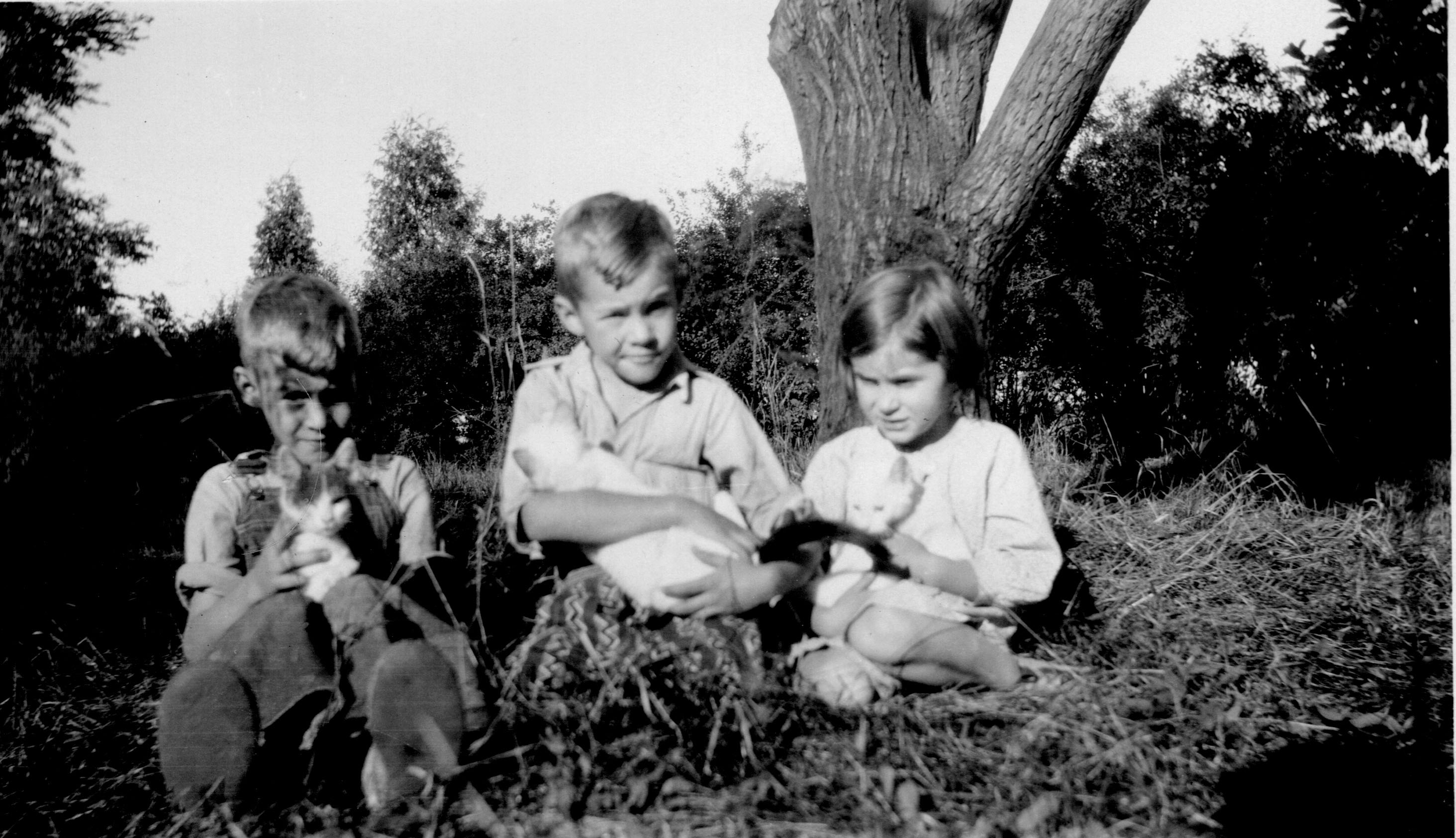 1931e Loren, Russ, Marcia holding cats