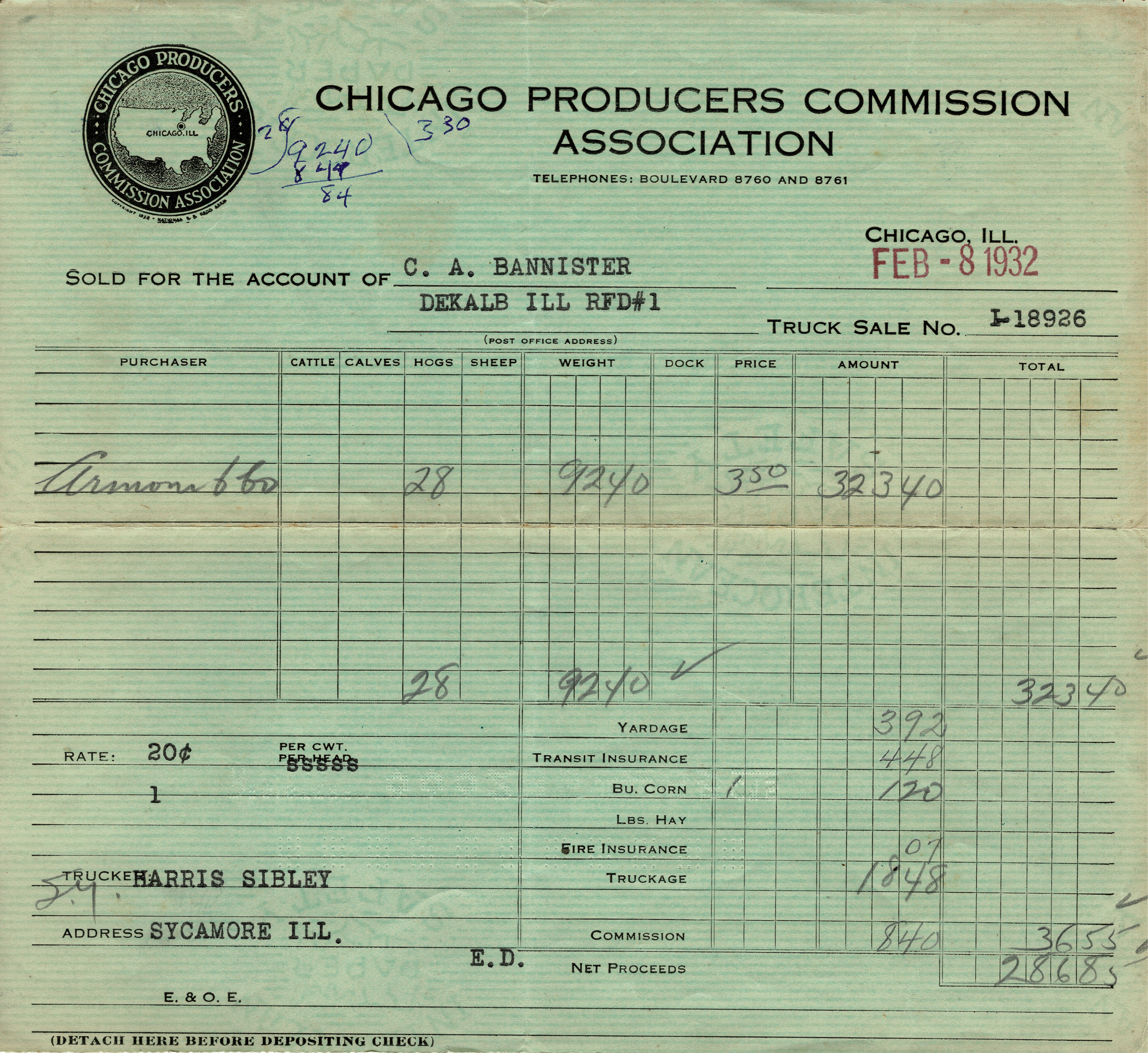 1932 Hog Sale Receipt